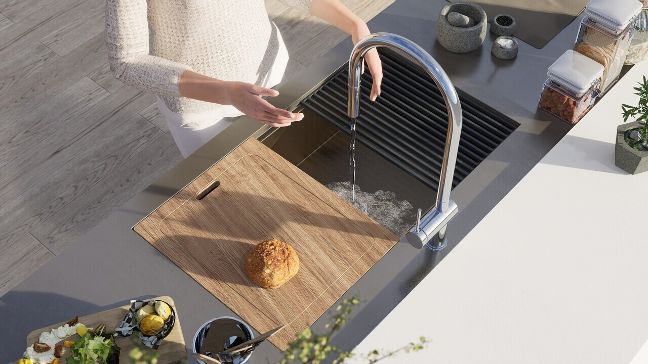 外觀設計簡約現代,特殊的水槽邊緣台階,可以安置專用切菜板,完美作為工作平台,這個設計讓即便是小型廚房也能採用大尺寸水槽,多種水槽鍍層顏色適合各種廚房風格,硬度高耐磨,並且更容易清潔,不容易滋生細菌。