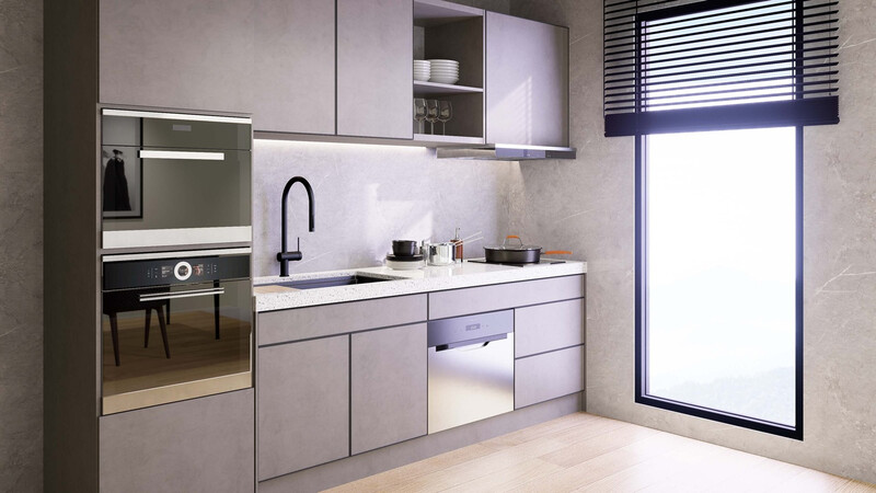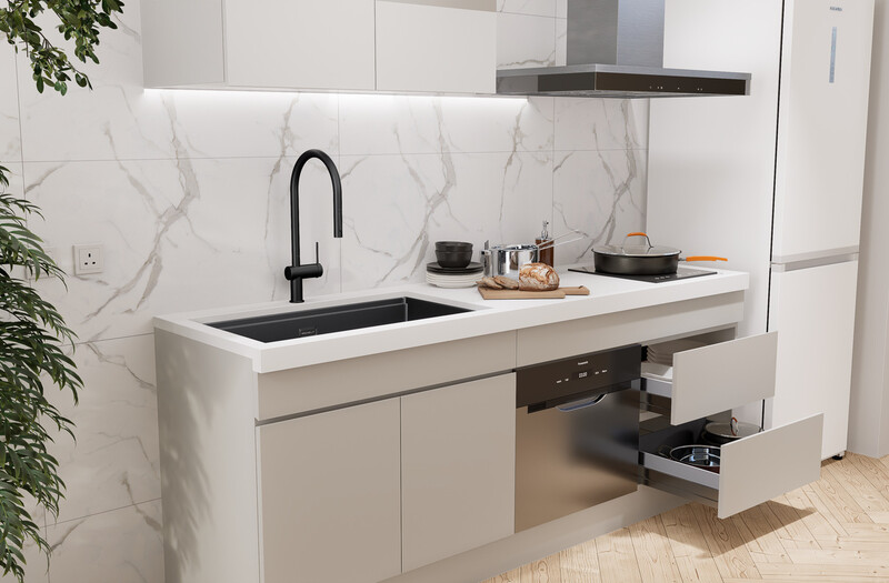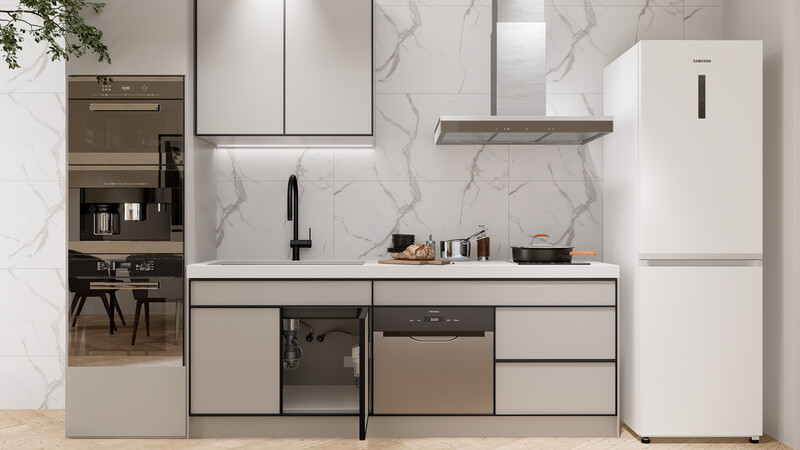 Für die Installation einer Spülmaschine muss außerdem ein Schutzblech oder eine Folie angebracht werden. Die Eckverbindungen werden mit Zungen- und Nutverbindungen sowie speziellen Schraubbeschlägen hergestellt und müssen während der Installation mit mindestens PVAC-Kleber der Klasse D4 (wasserdichter Weißleim) verleimt werden.