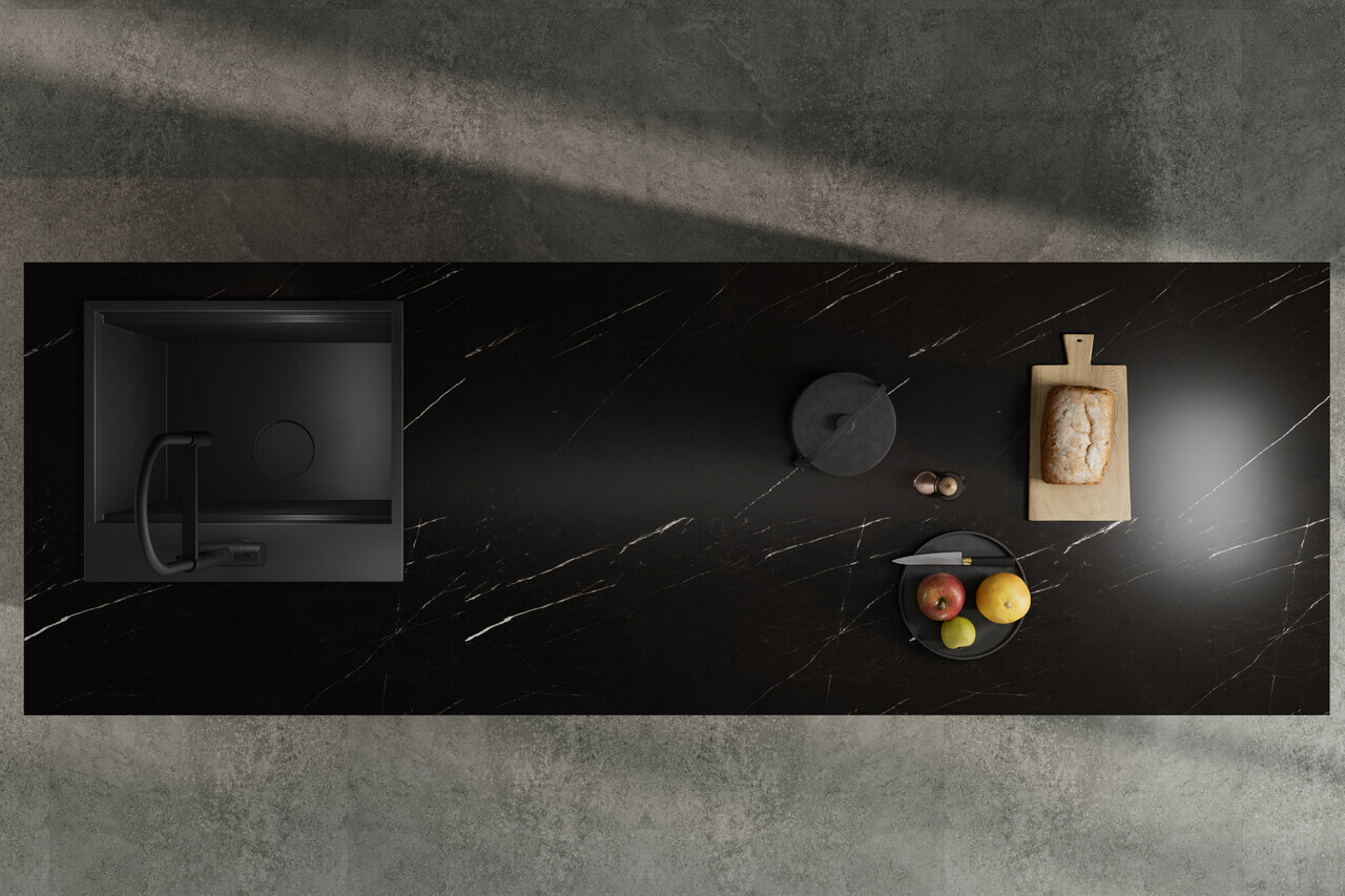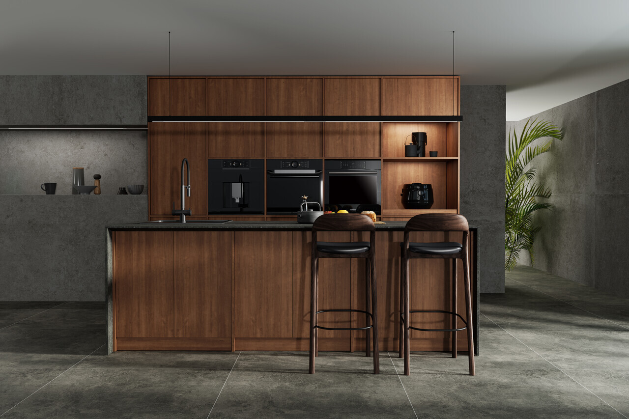 Die "Obsidian Realm"-Küche verkörpert die tiefe Eleganz von Schwarz mit einer modernen Atmosphäre, ein Symbol für Noblesse und Geheimnis.